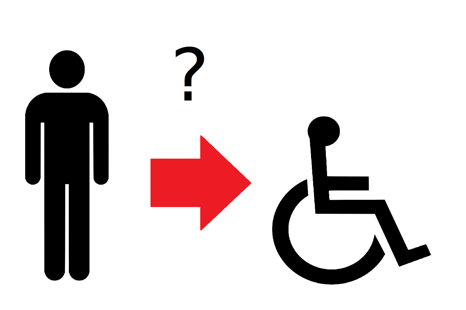 Ein Bild mit Pictogrammen das die Frage stellt: vom Laufen in den Rollstuhl?